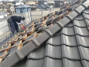 今回は、瓦屋根からガルバリウム鋼板の屋根材に葺き替え工事を行った