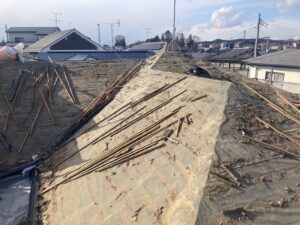 施主様は、次の地震に自宅が耐えられるかの心配もされており、地震対策としてガルバリウム鋼板を使用した屋根材の提案をさせていただきました。