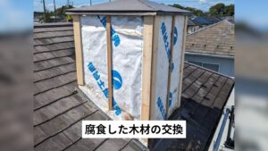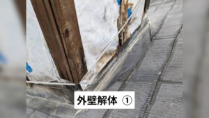 外壁材の劣化が目立ち雨水の侵入リスクが高くなっており、木材は腐食している状態でした。