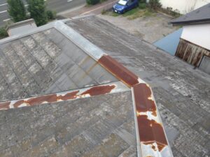 錆が目立ち、雨漏りリスクが非常に高い状態