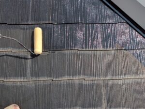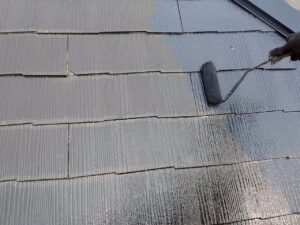 ②下塗り➤屋根の細かいひび割れの補修をしたり、屋根材と上塗りの塗料の接着剤としての役割で施工されます。屋根のひび割れなど劣化がひどい場合は、補修効果がある高価な下塗りをおこなう場合もあります。
