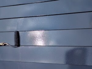 ④上塗り➤外壁塗装の仕上げとして行います。 この工程は、中塗りでの塗りむらや塗り残しをカバーし、外壁を美しく見せるために重要です。 また、塗膜を厚くして耐久性をさらに高めます。
