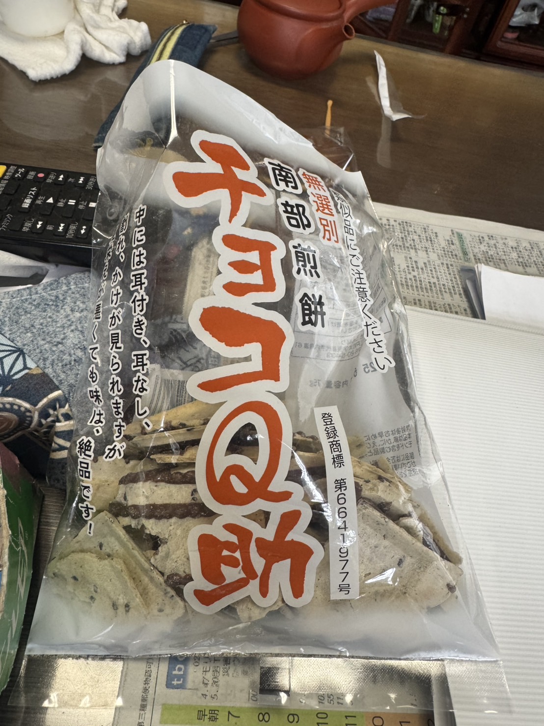 スタッフブログ2025年6月16日お客様からの差し入れ こんにちは! オリガミルーフ社長の青木です。先日、お客様からケンミンショーで紹介されたお煎餅を頂きました🥰 「チョコQ助」って、名前が可愛いですね~😆 青森県八戸市の有名な南部煎餅に2021年に仲間入りした煎餅だそうです。 私は、存じ上げなかったので、食べられる機会をありがとうございました☺️ 今週は、出張があるので甘いもので元気チャージできました💪🔥 #オリガミルーフ #オリガミ施工 #屋根 #屋根葺き替え #屋根工事 #宮城 #仙台 #名取 #チョコQ助