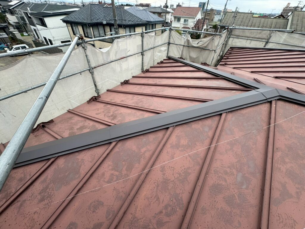 棟板金の施工が完了し、次回からは雨樋交換の作業に入ります。ぜひ次回もご覧いただければ嬉しいです。