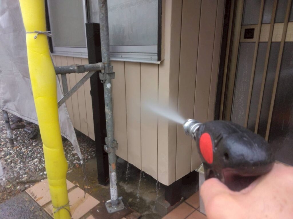 高圧洗浄は、これまで蓄積してきた汚れを徹底的に除去し、これから行う作業を綺麗に仕上げるためのとても重要な作業です。