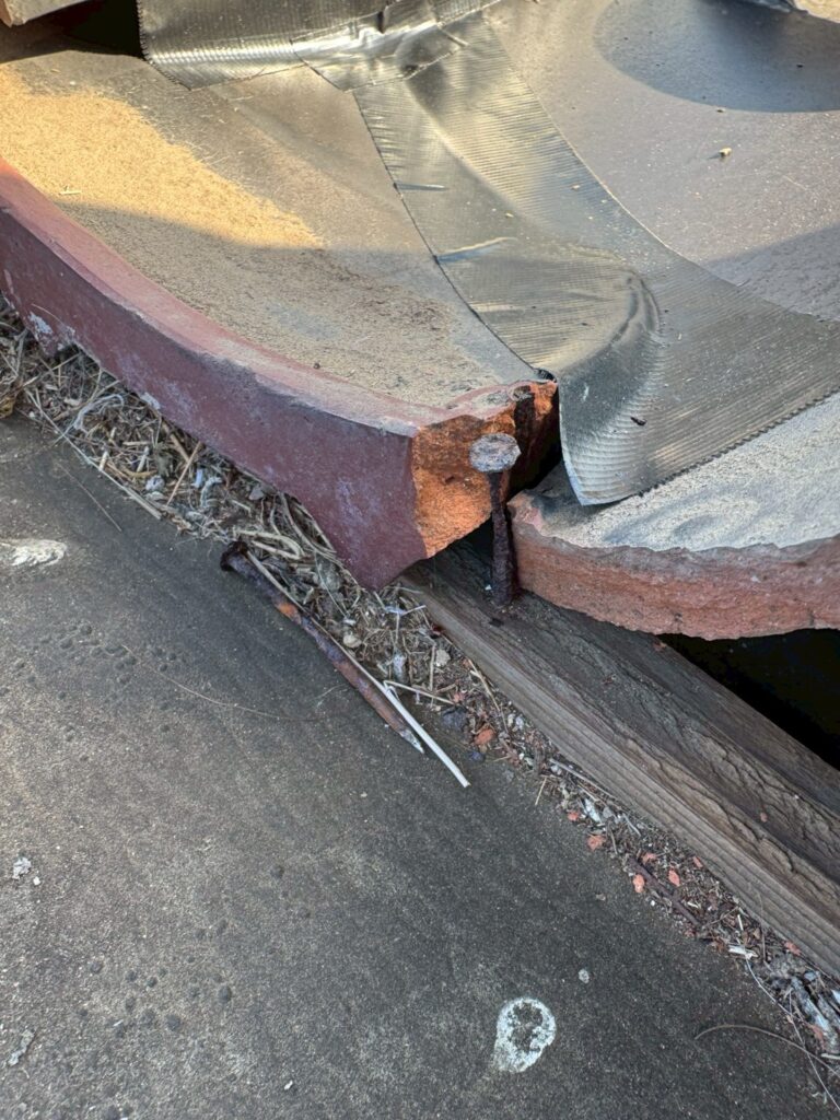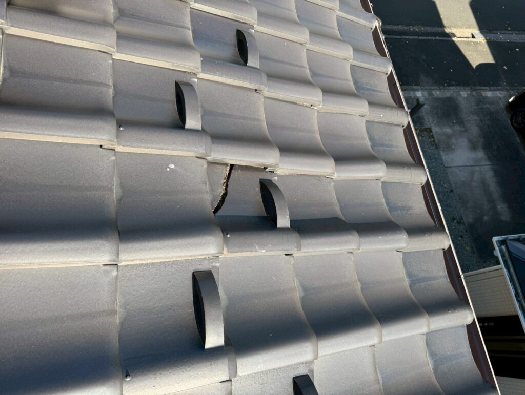 割れている瓦屋根