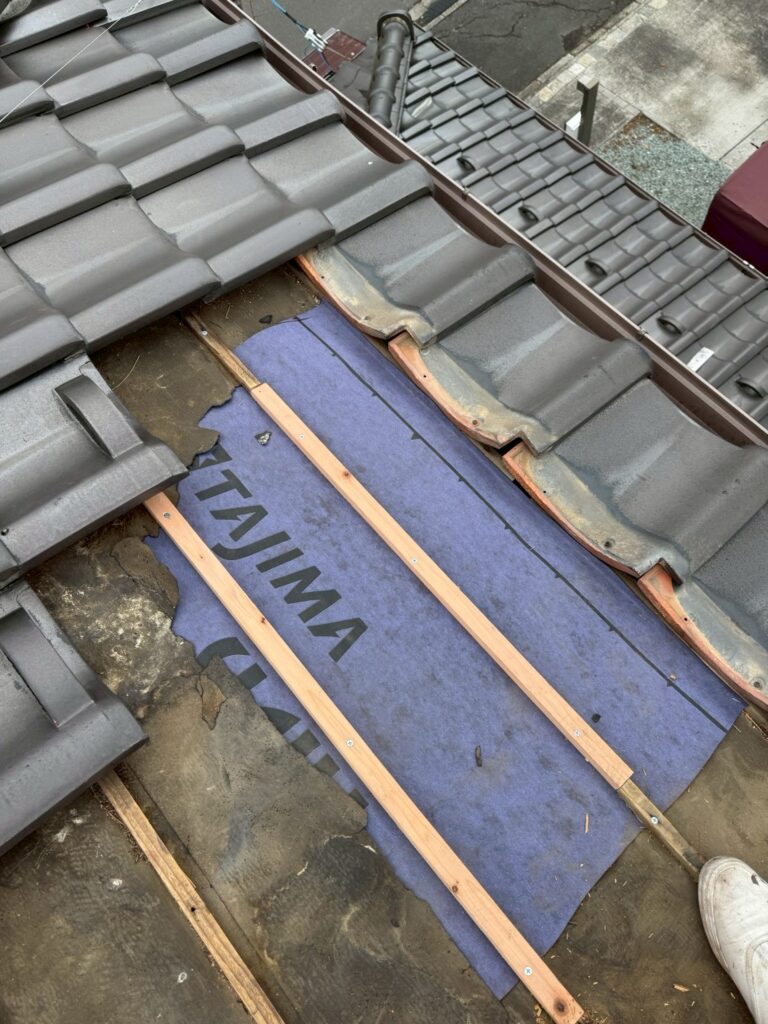 ・新規ルーフィングの敷設と瓦桟交換を行います。