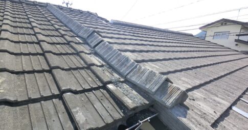 今回は、セメント瓦の棟のズレ補修工事の紹介です。