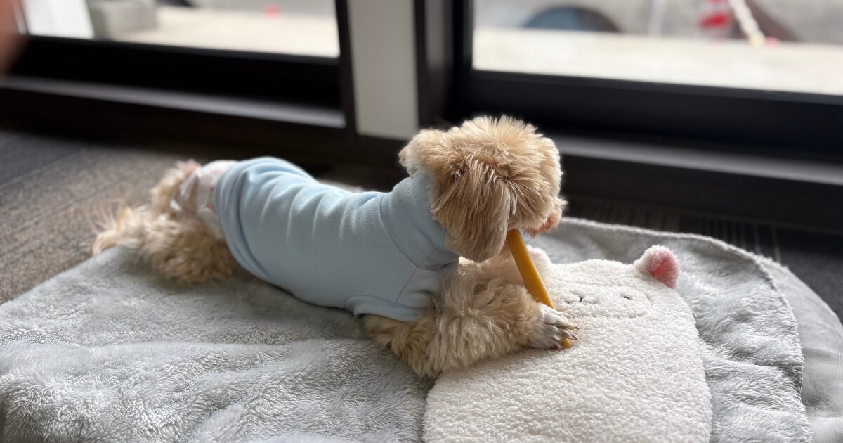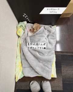 会社の朝は、とても寒いのでだんだんマルプーのメルモにとって過ごしにくい気温になってきました。暖房で部屋が温まる間、今日からは湯たんぽで温まってもらうことにしました★
