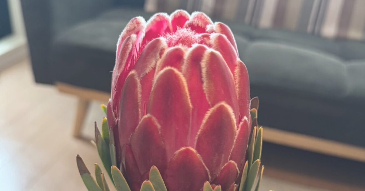 プロテアビーナスは、南アフリカのとあるプロテア農家夫婦の夫人がこの新しい品種を見出し、夫婦の愛を誓う意味を込めて名付けたと言われています。なんかロマンチックで照れる。😁