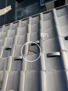 瓦の割れ、谷板金の錆、瓦のズレ、漆喰劣化による隙間、穴の発生などがあります。
