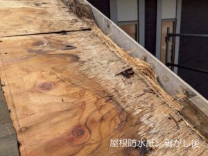 解体すると屋根内部まで腐食が進行していました。(↓屋根防水紙を剥がした後の様子)
