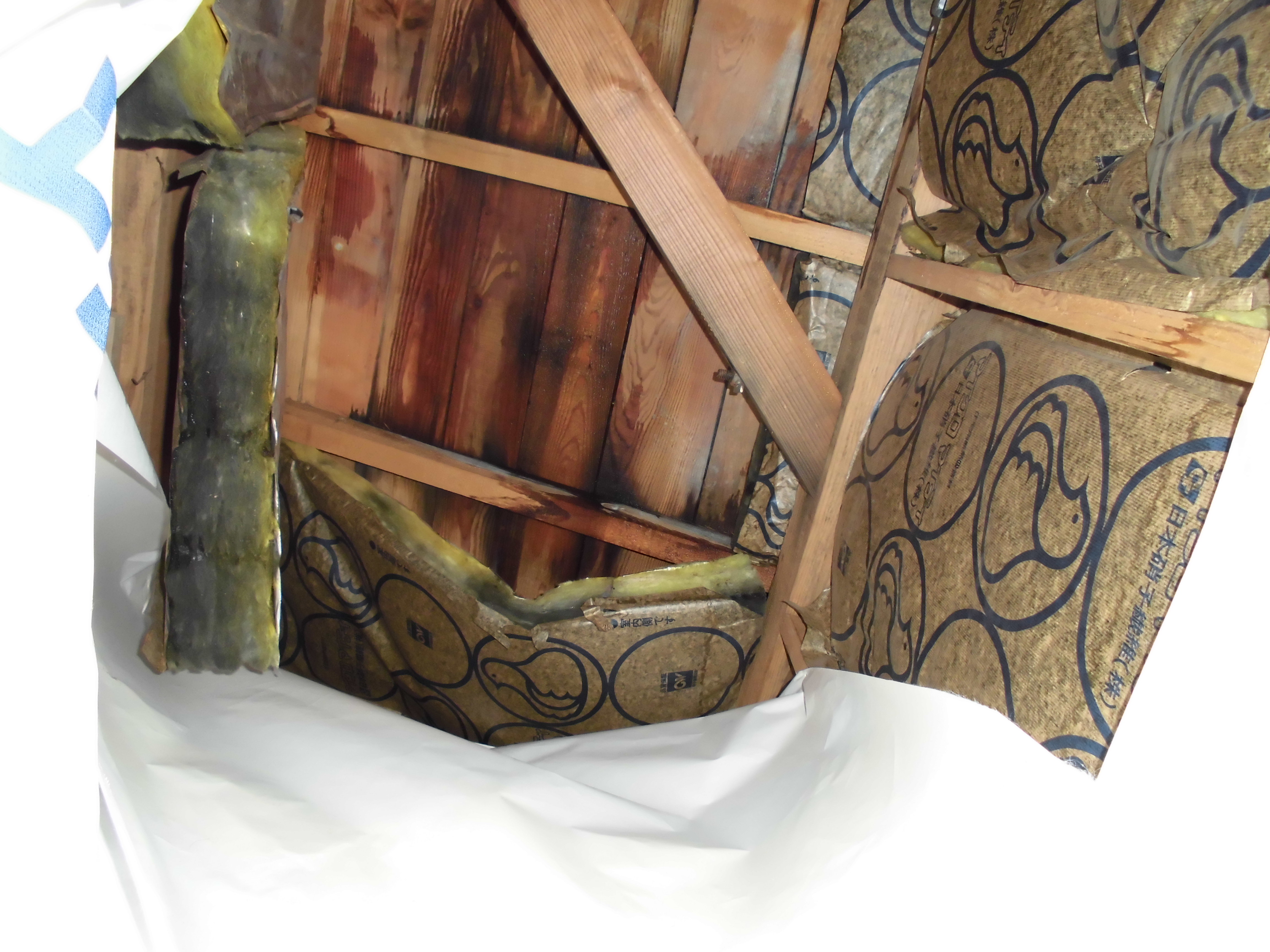 こちらは雨漏りが発生している屋根の写真です。特に梅雨の時期には、雨漏りの被害が多くなりがちです。このような被害を未然に防ぐためにも、早めの点検が重要です。私たちは、オリガミルーフは 扇町店および名取店にて、皆様のお宅の屋根をしっかりとチェックし、異常があればすぐに修理を行います。
